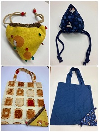 急いで作ったためご愛嬌な所もありますが(笑)それぞれ個性あふれるエコバックができました!!生地の色合いがおしゃれだったり、ピザおにぎりをイメージしたものなど出来上がったのを見せ合いっこして盛り上がりました(^^)使うのが楽しみです!