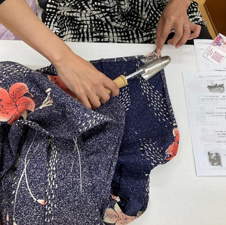 やはり最初の袖作りでは、初めての和裁道具や細かい縫い作業に苦戦されている方が多かったですが、袖の丸みを絞る作業では「すご~い!!」「面白い!!」と楽しんでもらえたようです(^▽^)