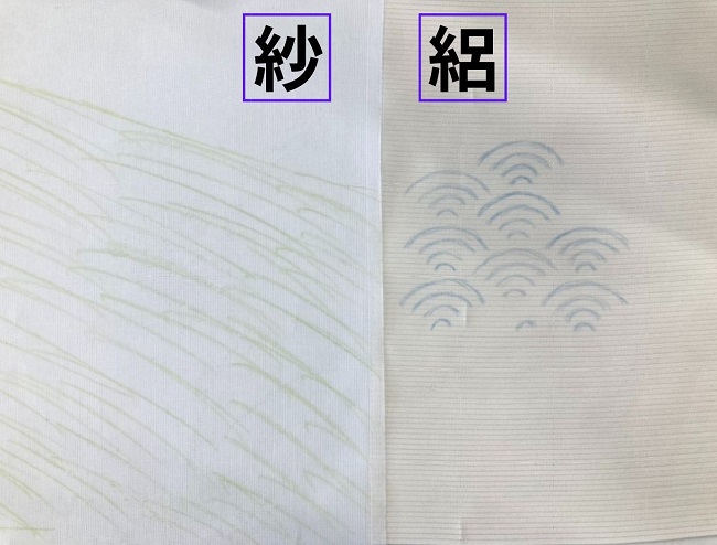 絽には柄があり紗には基本ぼかしが入っている物もあります。
