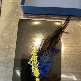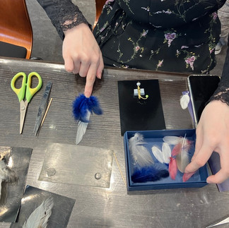 4/26に春の研修で目細八郎兵衛商店へ行き、フェザーアクセサリーの体験を行なって来ました。ここは手作りの加賀毛針を専門とし加賀毛針の美しさを伝えたくフェザーアクセサリーの体験を始めたそうです。色々なフェザーを重ねていき、ブローチを作ります。