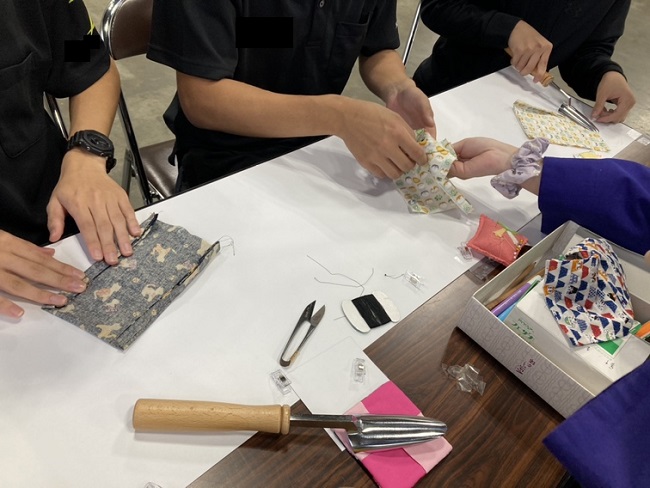 コースターやポケットテッシュケース制作では、折り紙のように布を折ったりパズルにように布を組み合わせたりする過程を楽しんで制作して頂けたようです。