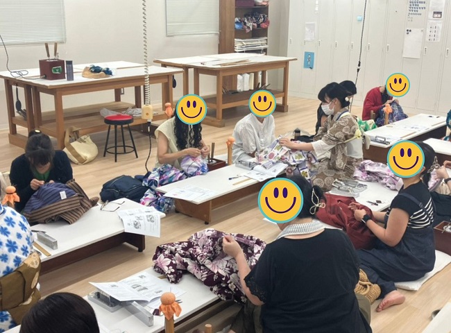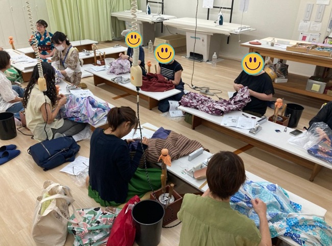 みなさんが授業で和裁をしたときは耳ぐけで縫い代を留めていたと話しされていて、体験会では殆どの縫い代の留めをくけ縫いでしていることに驚いていました。