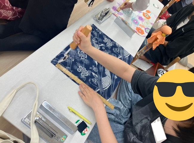 コテ文鎮など初めて使用する道具に戸惑いながらも上手に使いこなしていらっしゃいました。特にかけ針を使っての縫い代をくける・折る作業では「便利!」と感想をいただきました。縫い物好きの方が集まったので皆さん集中して黙々と作業をされていました。
